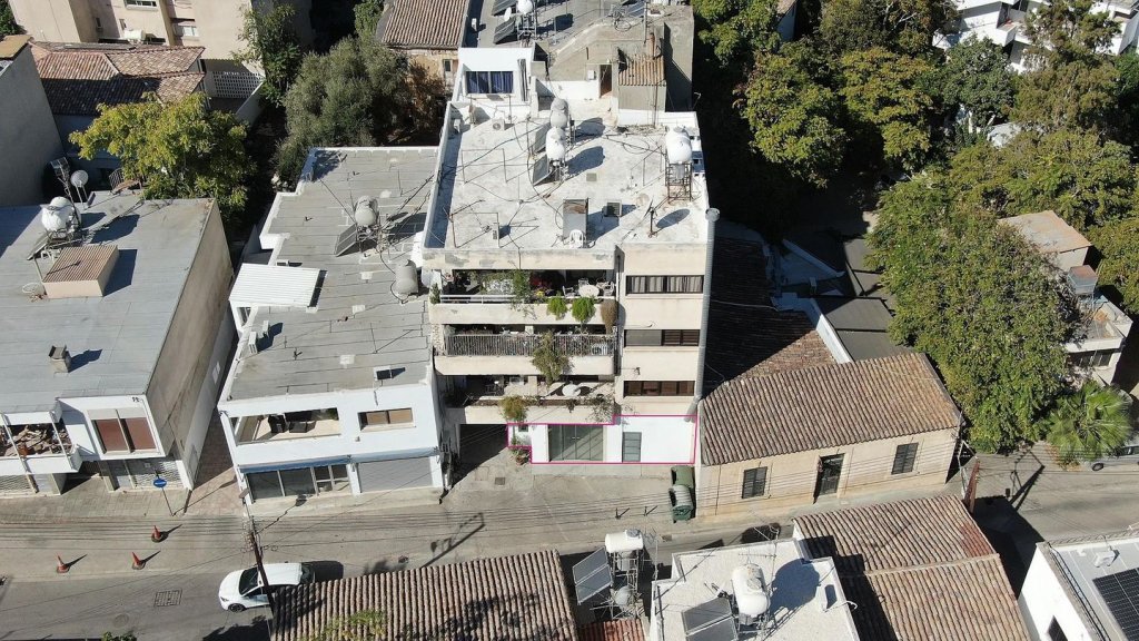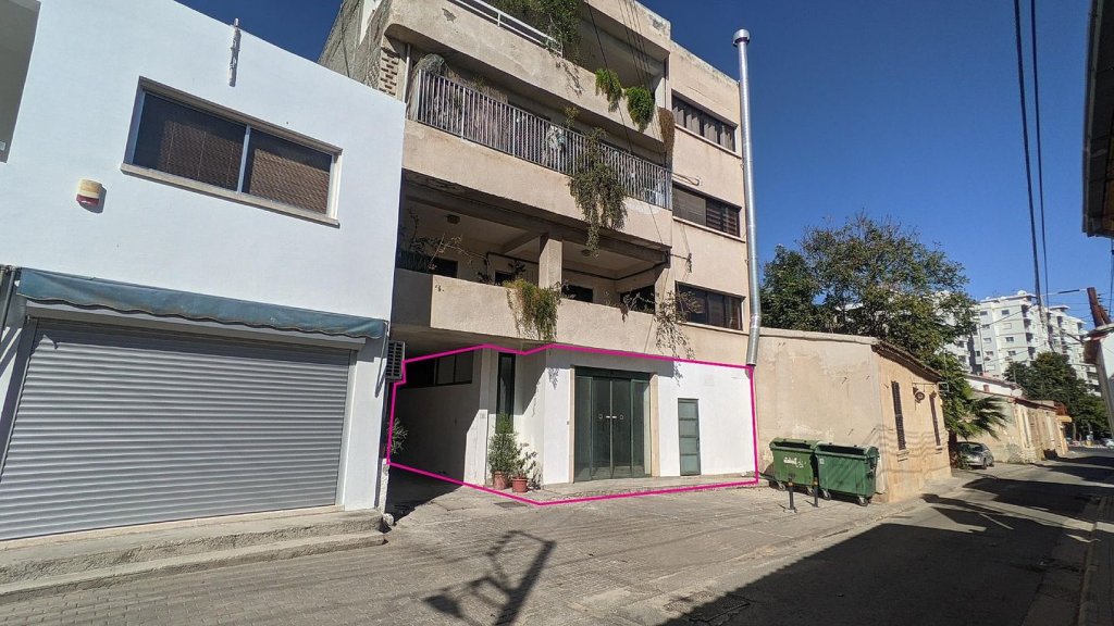 A prime location shop with auxiliary space on the ground floor of a three-storey building located in Agioi Omologites, Nicosia, on walking distance of many amenities, services and schools.