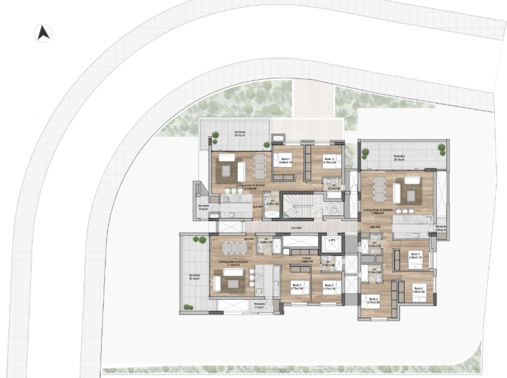 The five-story apartment building is located in a central area of Nicosia, in an attractive neighborhood with access to amenities and services.